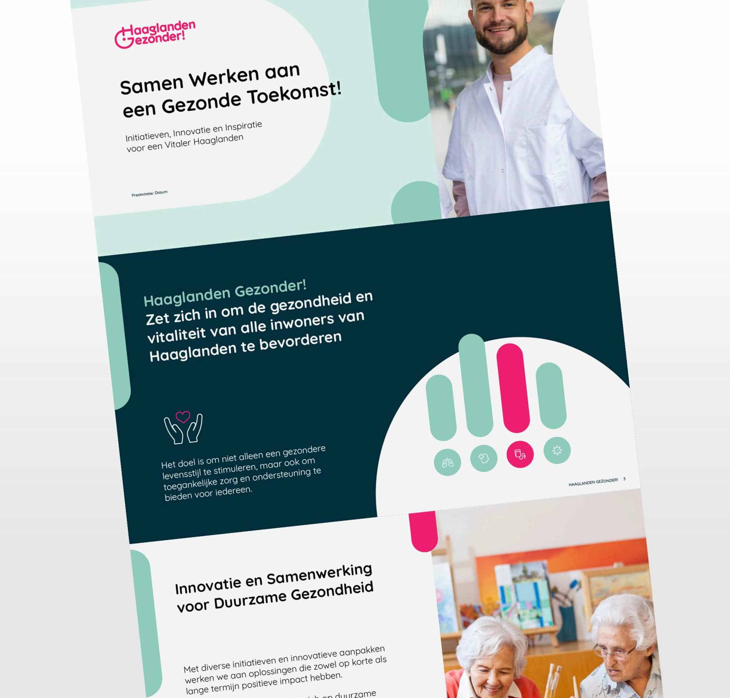 Voor HaaglandenGezonder.nl werd ik gevraagd om een visuele identiteit te ontwikkelen die past bij een brede beweging voor een gezondere leefstijl in de regio Haaglanden. De stijl moest inwoners aanspreken én gedragen worden door gemeenten, beleidsmakers en zorgorganisaties. Belangrijk was dat de uitstraling activerend zou zijn, maar niet belerend — positief en uitnodigend, zonder afstandelijk te worden.